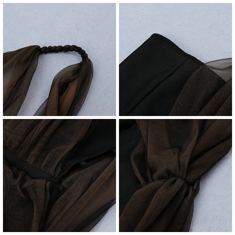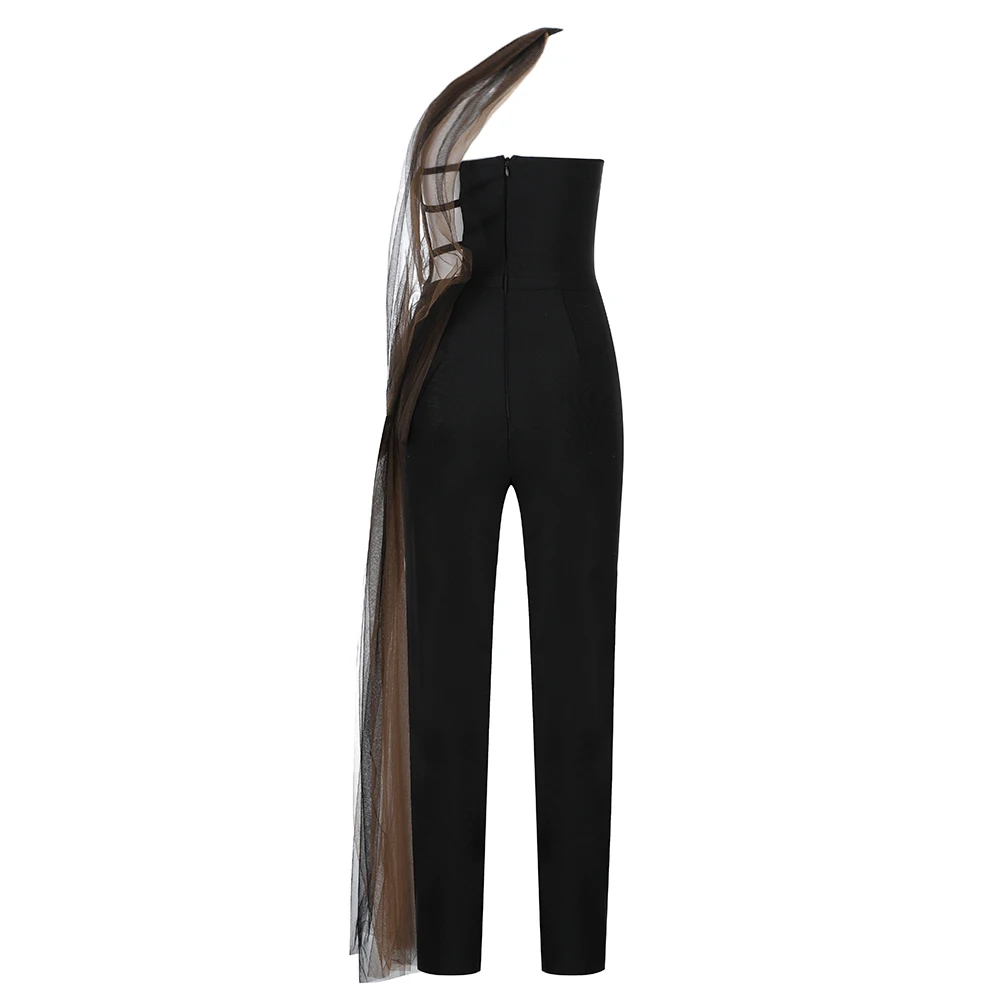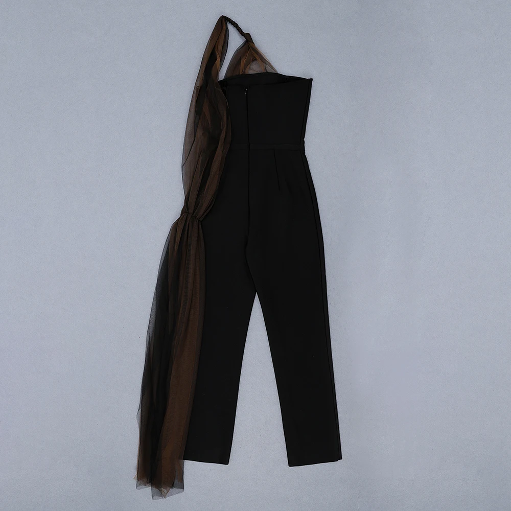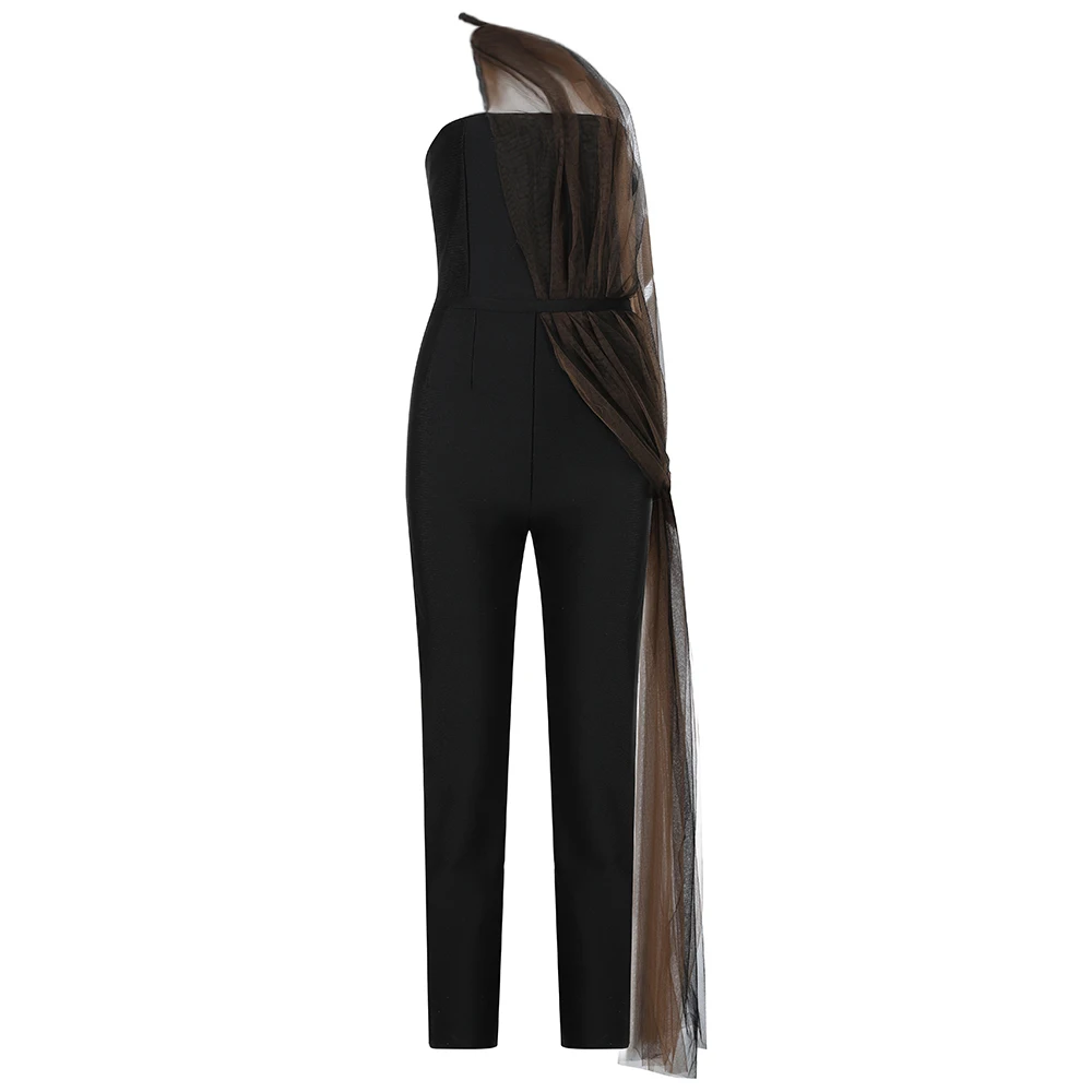 | CIEMIILI sexy solid black mesh strapless woman bandage jumpsuit 2020 new fashion halter party skinny nightclub bodycon jumpsuit |