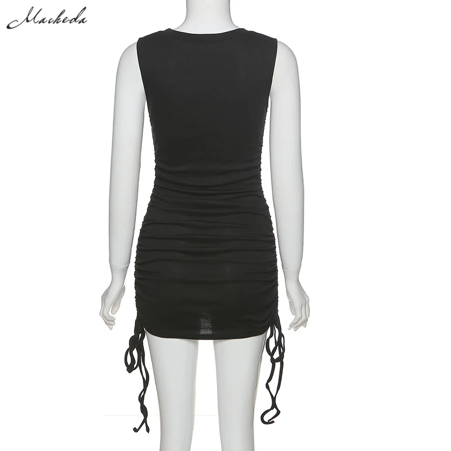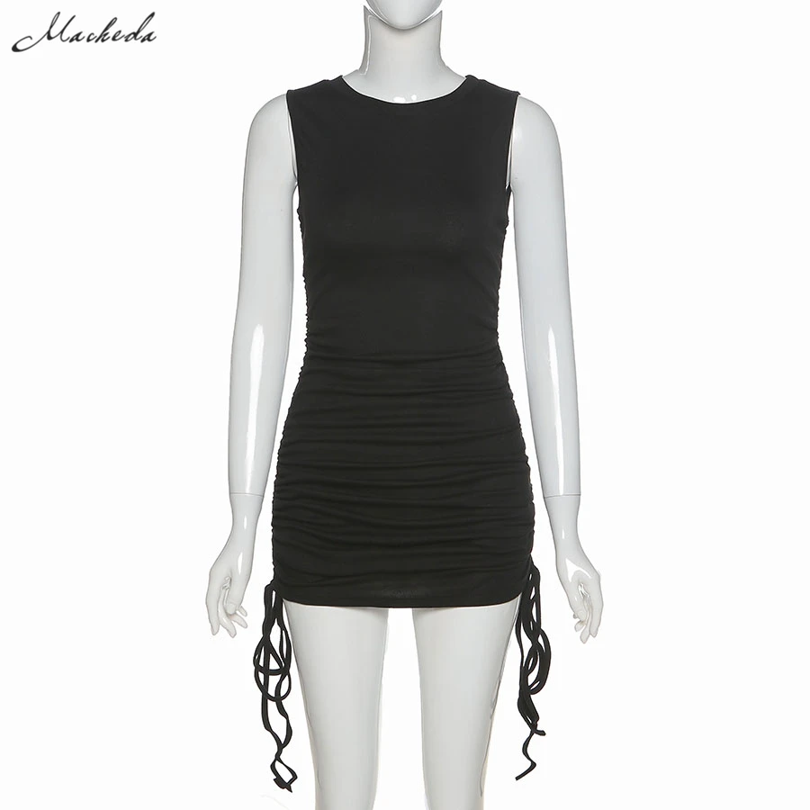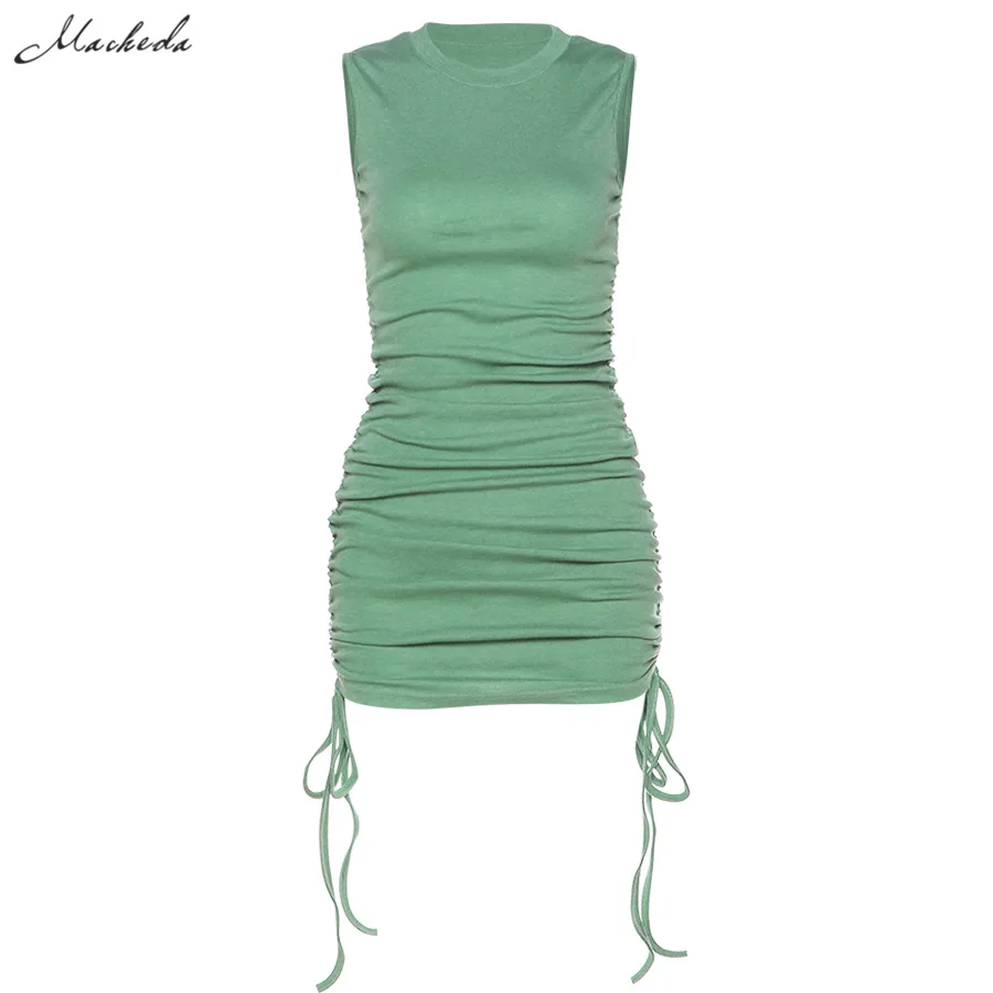 Macheda Summer Solid Casual Vacation Slim Dress Women knitting O Neck Sleeveless Fashion Skinny Lady Mini Wrap Dress 2020 New
