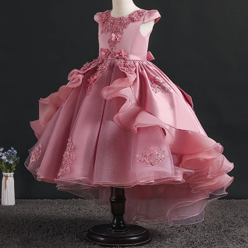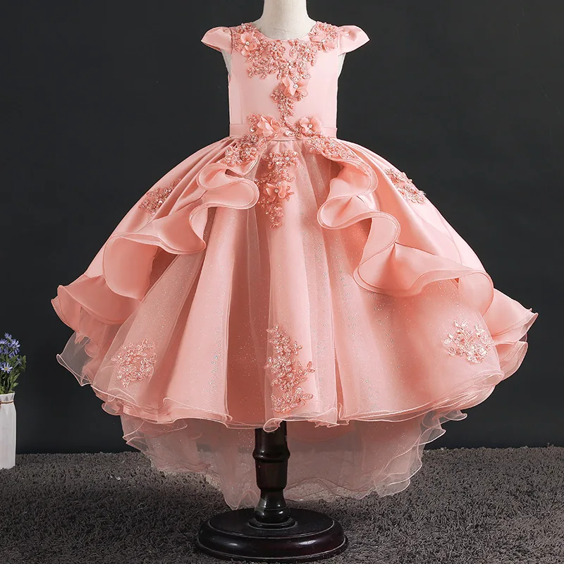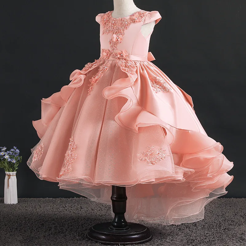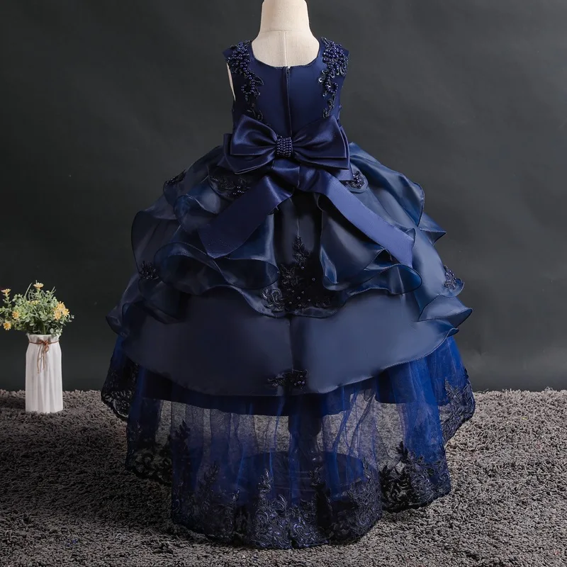 | New Flower Girls Birthday Party Embroidered Tuxedo Girl Christmas Dress Wedding Prom Beaded Swallow Dress Party Dress for Girls |