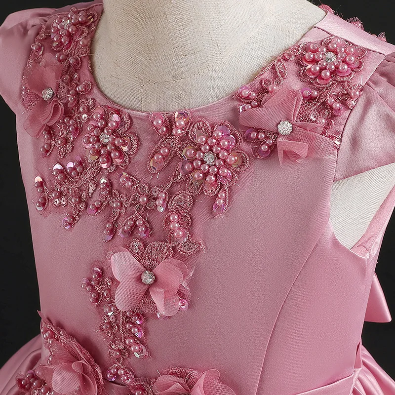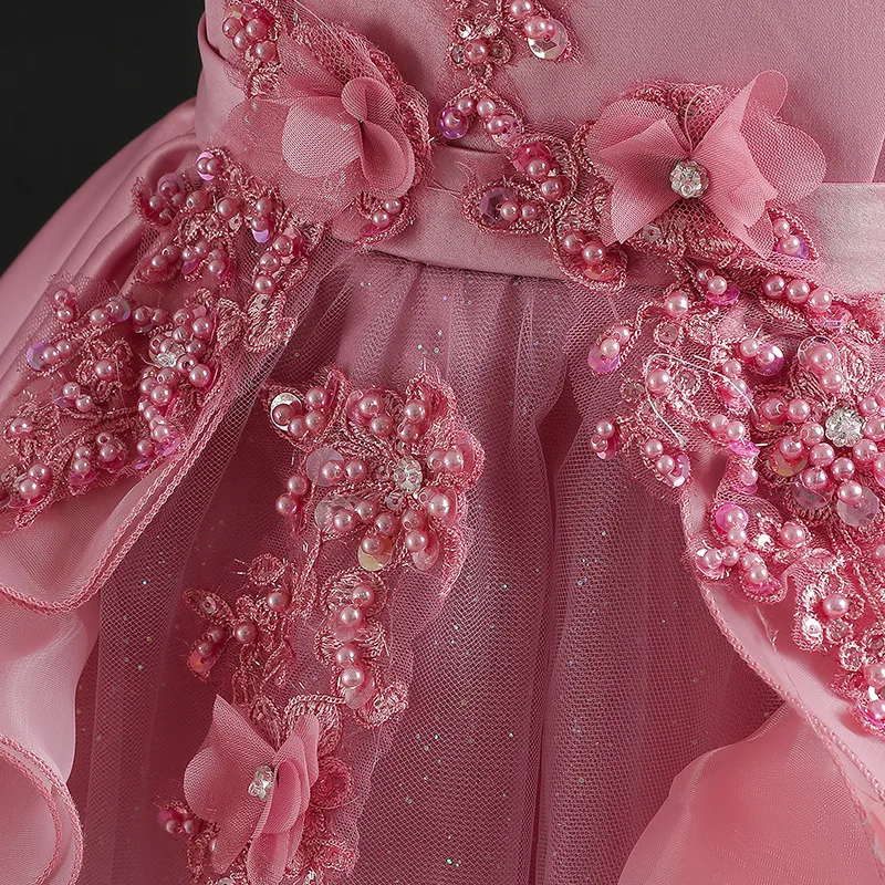 New Flower Girls Birthday Party Embroidered Tuxedo Girl Christmas Dress Wedding Prom Beaded Swallow Dress Party Dress for Girls