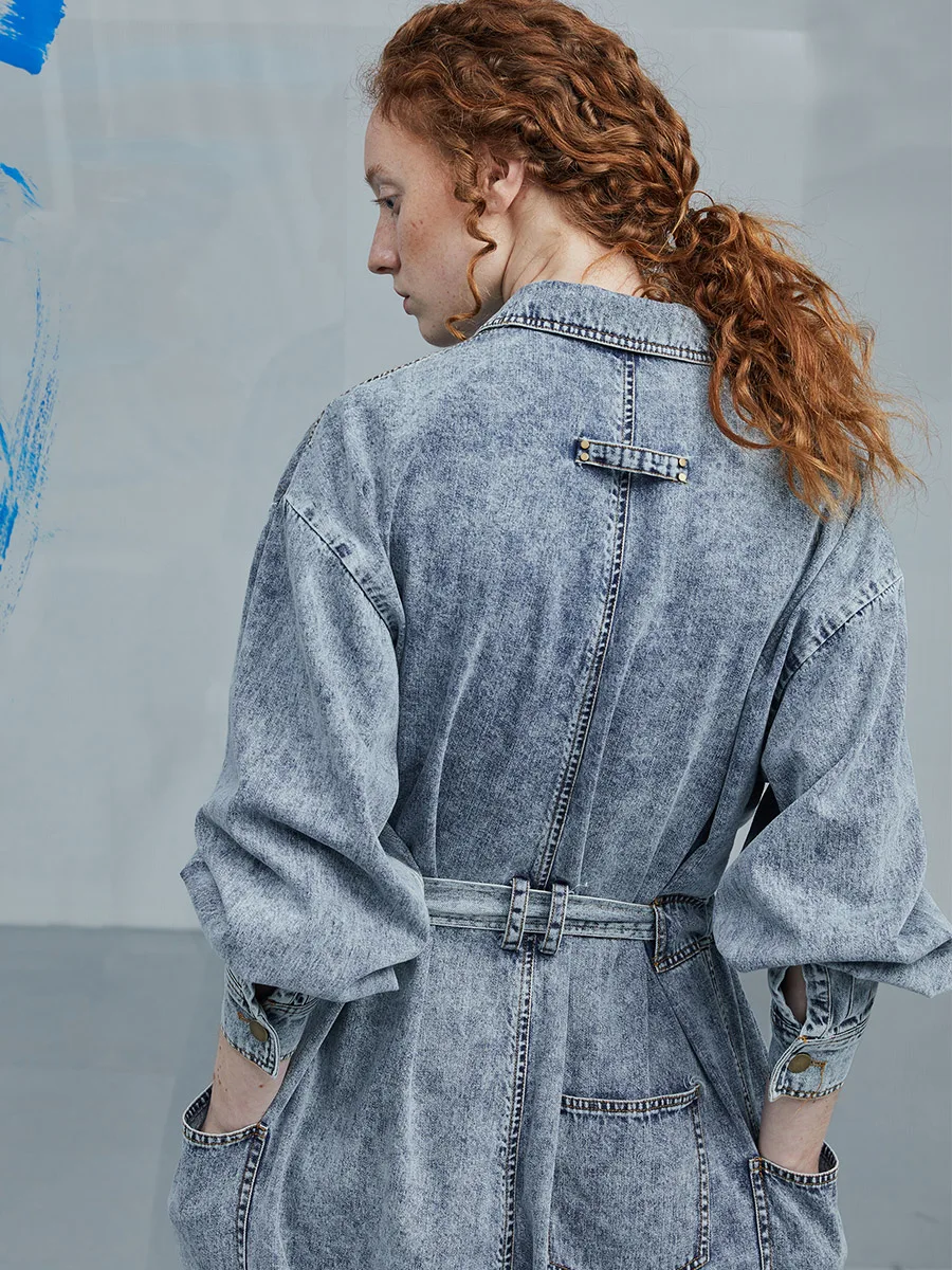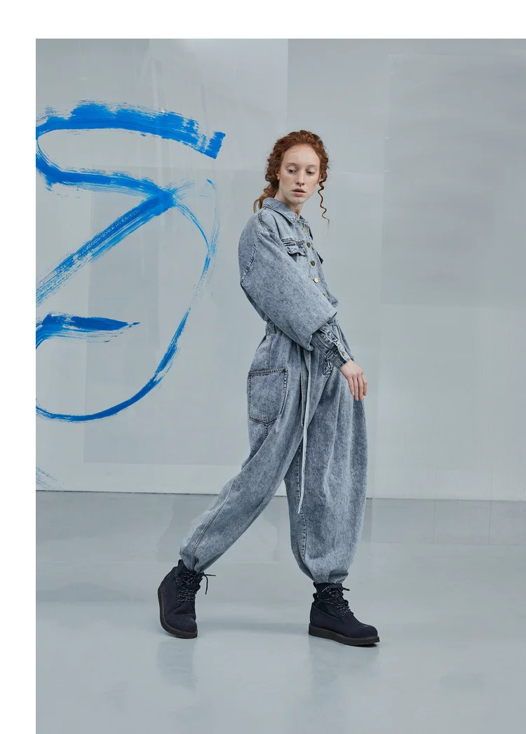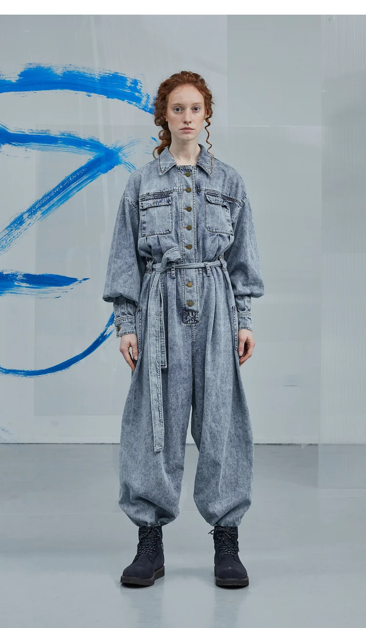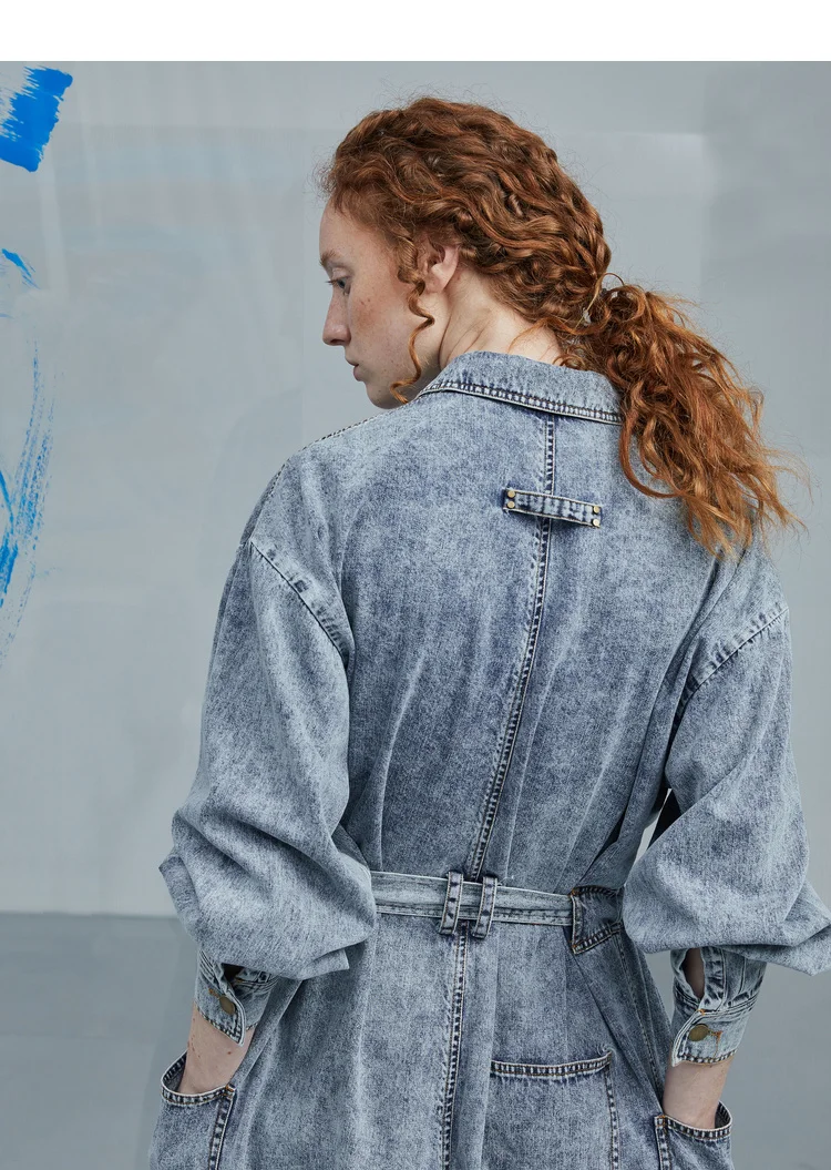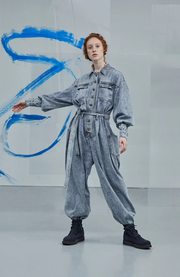 Free Shipping Original Design AIGYPTOS Spring Summer Women Brief Handsome Vintage Denim Jumpsuit Casual Loose Long Sleeve Cotton Denim Overalls.