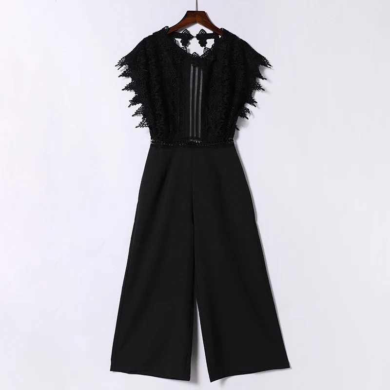 0 Response to "Sexy Lace Hollow Out Women's Jumpsuit Rompers Sleeveless Backless Black White Overalls 2020 Summer Wide Leg Ruffles Playsuits"