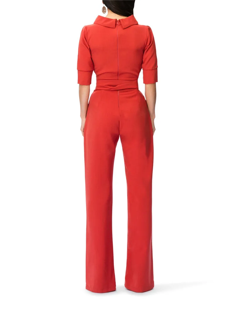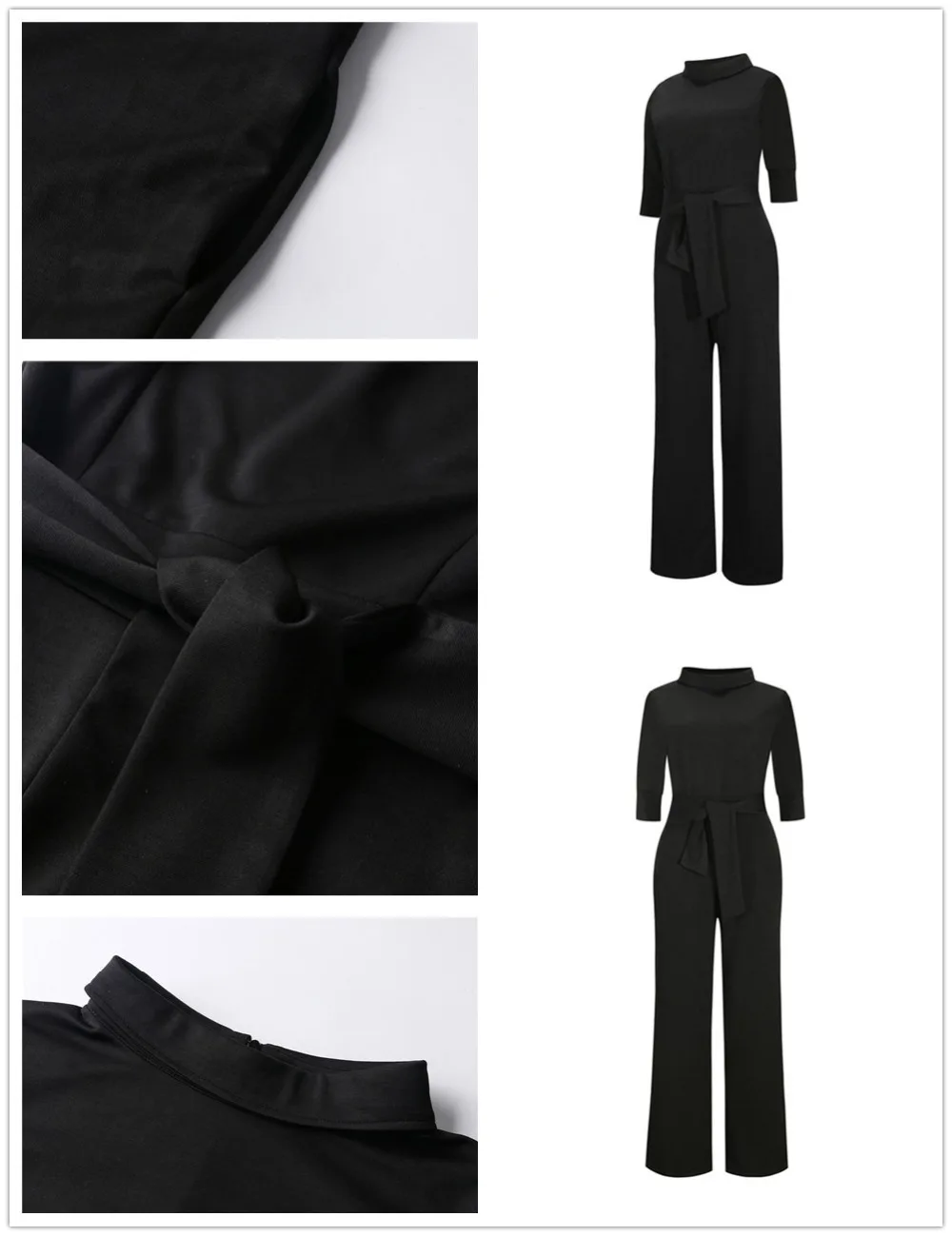 | Women Straight Jumpsuits Half Sleeve Turtleneck Sash Lace Up Long Pants Party Club Romper Modern Lady Clothes Christmas Outwear |