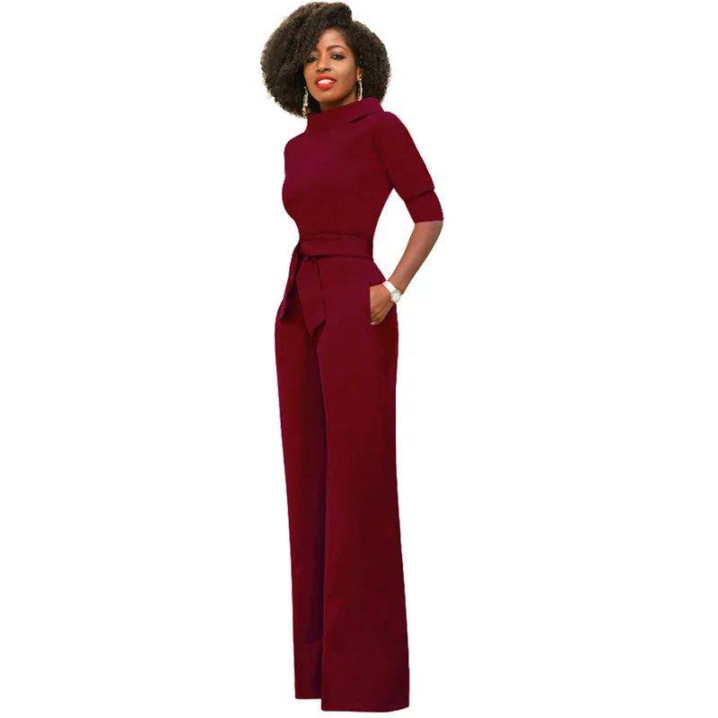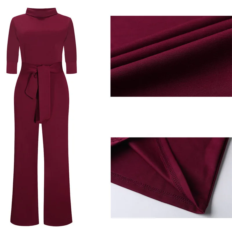 0 Response to "Women Straight Jumpsuits Half Sleeve Turtleneck Sash Lace Up Long Pants Party Club Romper Modern Lady Clothes Christmas Outwear"